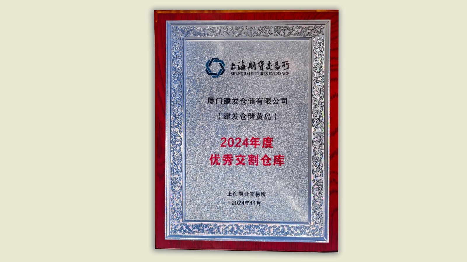 日前,在2024年上海期貨交易所交割庫(kù)和質(zhì)檢機(jī)構(gòu)年度工作會(huì)議上,廈門建發(fā)倉(cāng)儲(chǔ)有限公司黃島庫(kù)(位于山東省青島市黃島區(qū)七星河路363號(hào))獲得“2024年度優(yōu)秀交割倉(cāng)庫(kù)”稱號(hào)。
