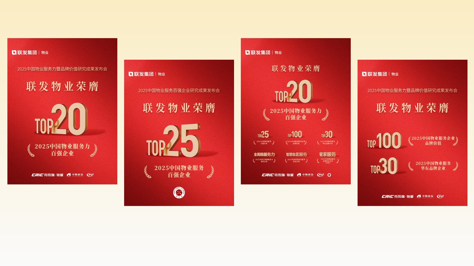 Recently, at the 2025 China Property Service Capability and Brand Value Research Results Conference, Lianfa Property was recognized as one of the “Top 20 Property Service Enterprises in China” and as a “Leading Enterprise in Full-Cycle Service Capability in China.” In addition, at the 2025 China Top 100 Property Service Enterprises Research Results Conference, Lianfa Property was named one of the “Top 100 Property Service Enterprises in China” for the 16th consecutive year, achieving an overall ranking of 25th.